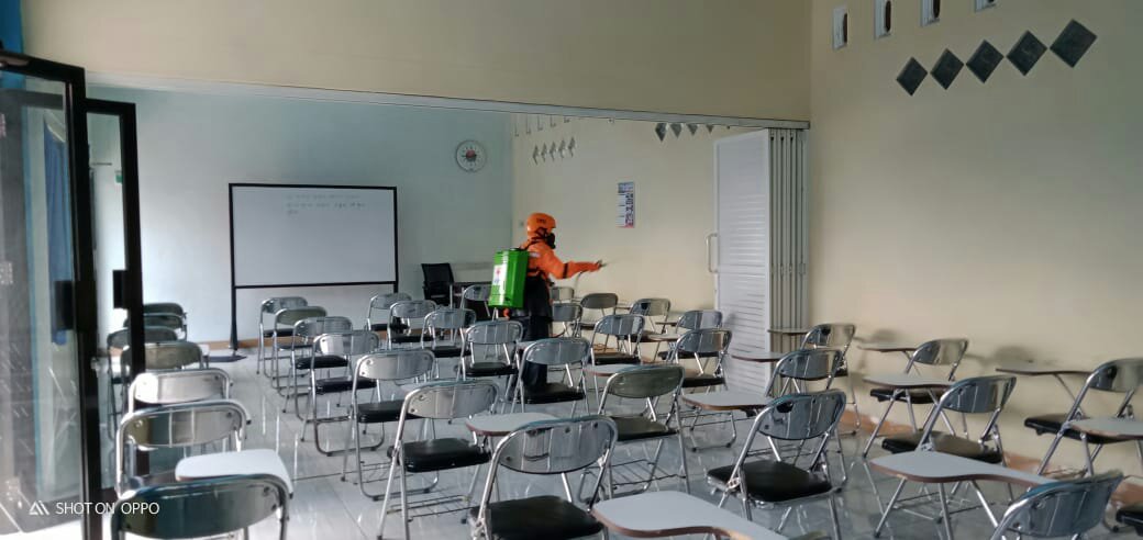 Dengan adanya pandemi penyebaran Covid-19 ini, kita antisipasi, menjaga, mengingat siswa kami beberapa dari luar daerah dan tinggal di asrama.