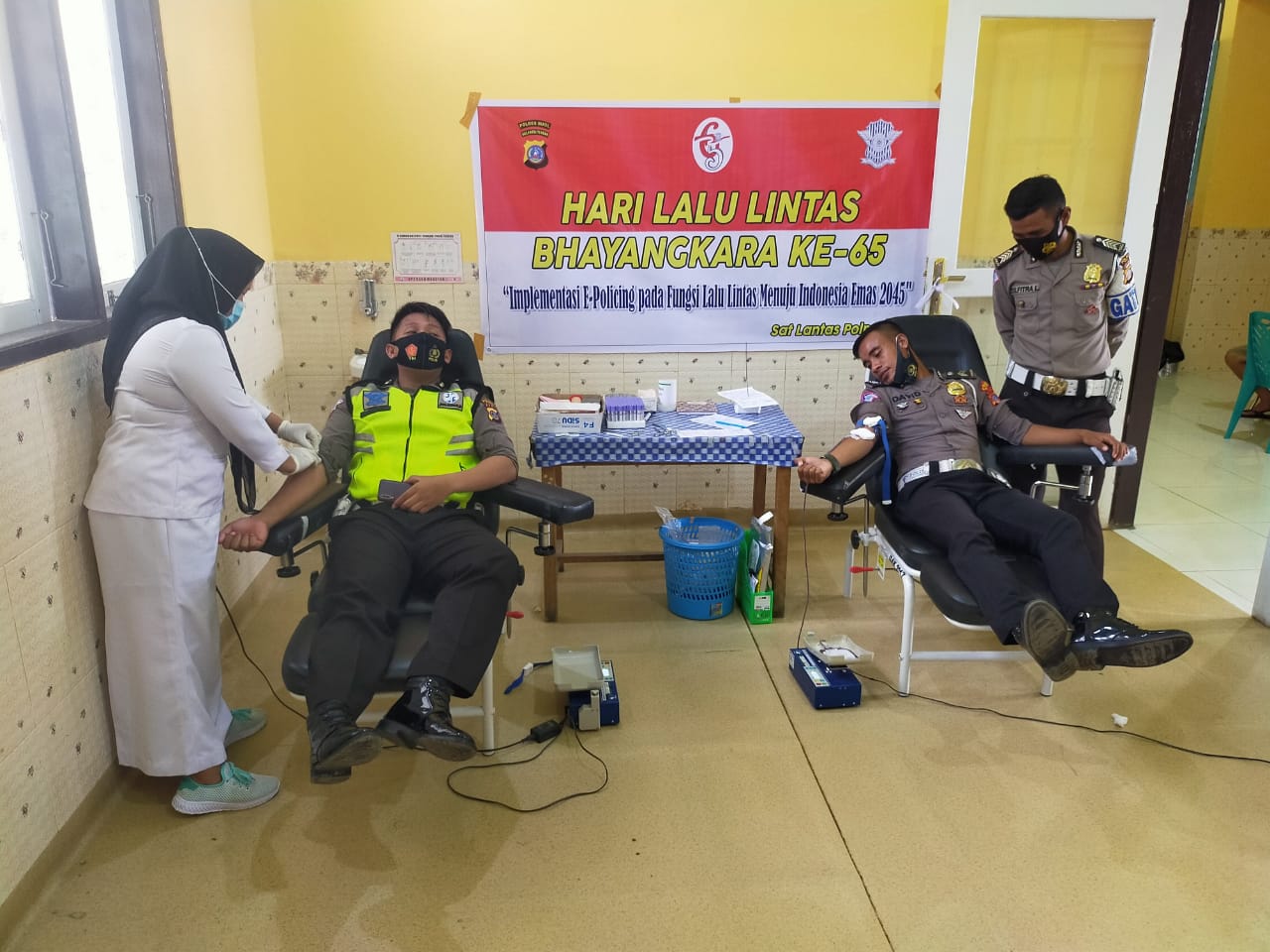 MASPOLIN || Buol (Sulteng) — Dalam rangkaian kegiatan HUT Lalu Lintas Bhayangkara ke-65 di tahun 2020, Satuan Lalu lintas (Satlantas) Polres Buol menggelar kegiatan bakti sosial donor darah di RSU Mokoyurli Kelurahan Leok 2 Kecamatan Biau Kabupaten Buol, Rabu (16/09/2020).