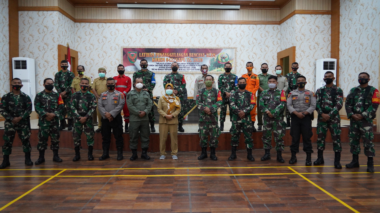 Danrem 042/Gapu, Brigjen TNI M. Zulkifli, S.I.P, M.M., melalui Kasrem 042/Gapu Kolonel Kav Rayen Obersyl membuka pelatihan penanggulangan bencana tersebut di Balai Prajurit Korem 042/Gapu, Jambi.