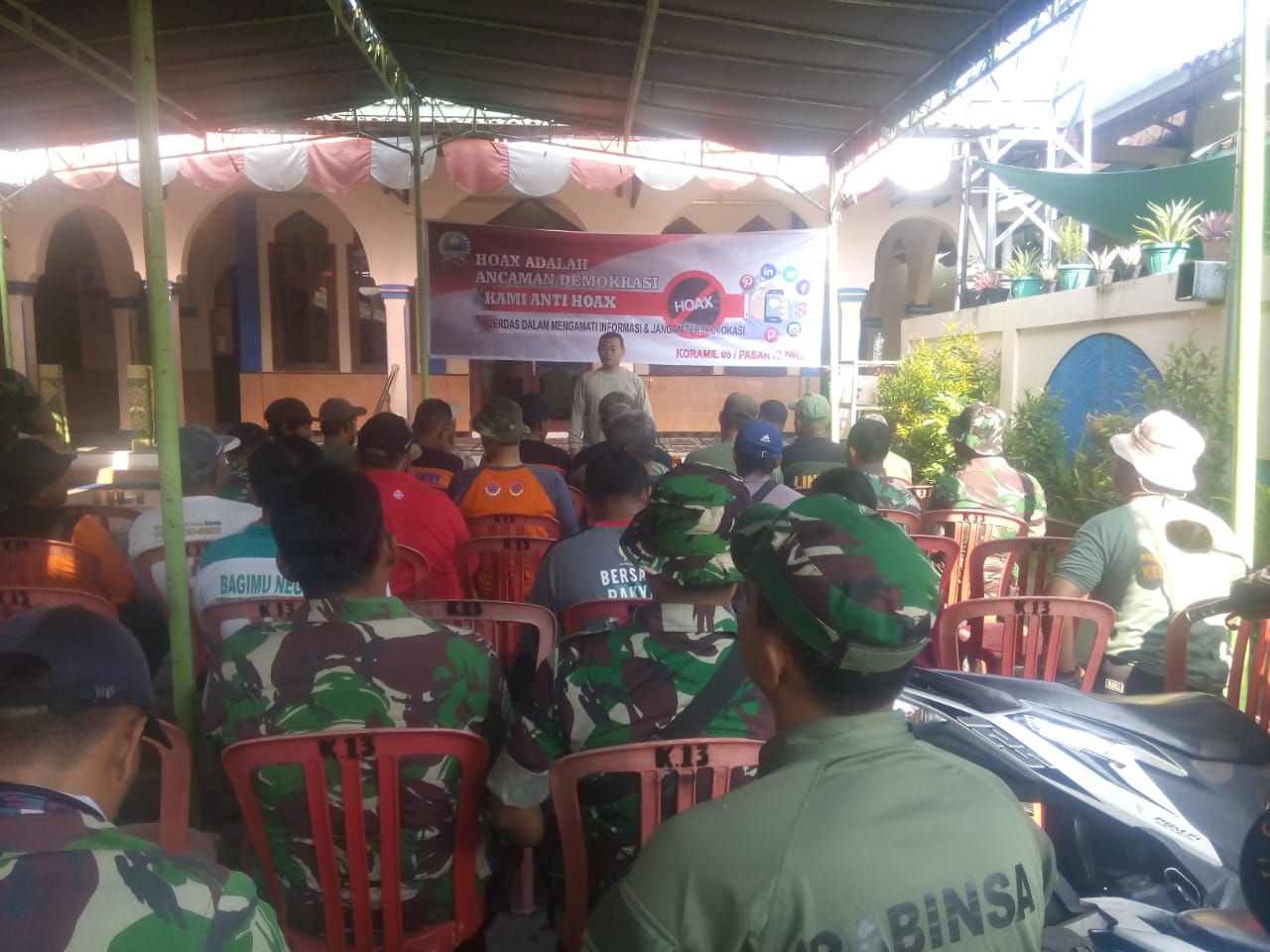 Surakarta(Maspolin.id) – Inisiatif Danramil 05 / Pasar Kliwon Kodim 0735 Surakarta Kapten Cba Kurdi pada saat mengambil Apel Kegiatan Karya Bakti Daerah (KBD) Tahap I Tahun 2019 yang akan dilaksanakan selama 21 Hari di Kelurahan Semanggi Kecamatan Pasar Kliwon Kota Surakarta yaitu menyampaikan Sosialisasi Perang terhadap Hoax adalah Ancaman Demokrasi yang ada pada Bangsa Indonesia .