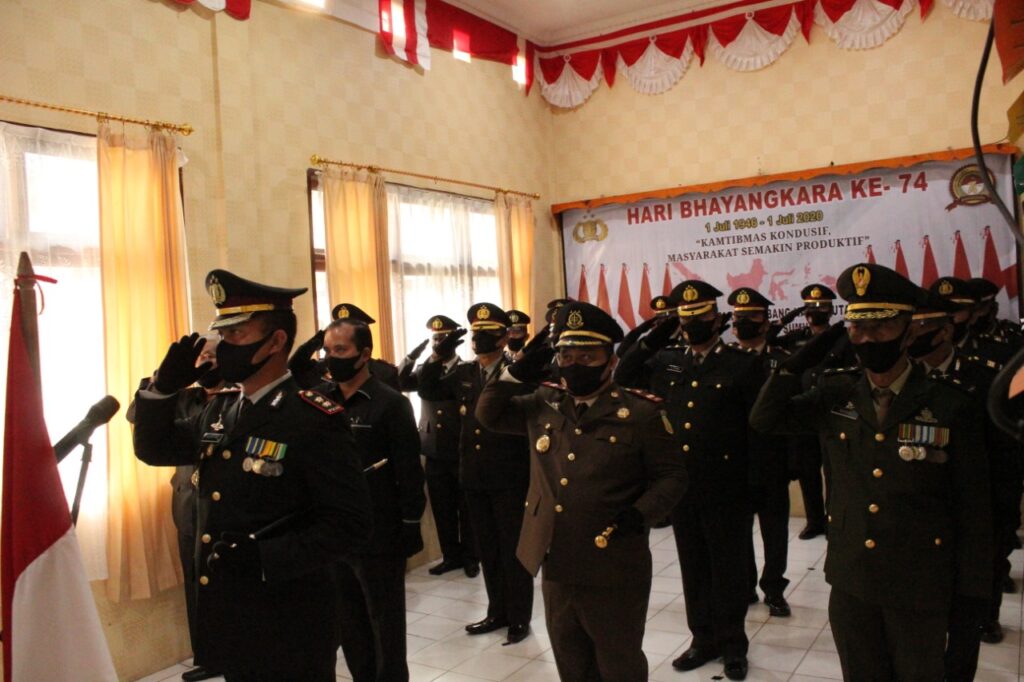 Dimana pada peringatan Hari Bhayangkara ke 74 pada tahun ini tidak dilaksanakan Upacara di lapangan terbuka dikarenakan situasi pandemi Covid-19 dengan memperhatikan protokol kesehatan, social distancing, dan menggunakan masker.