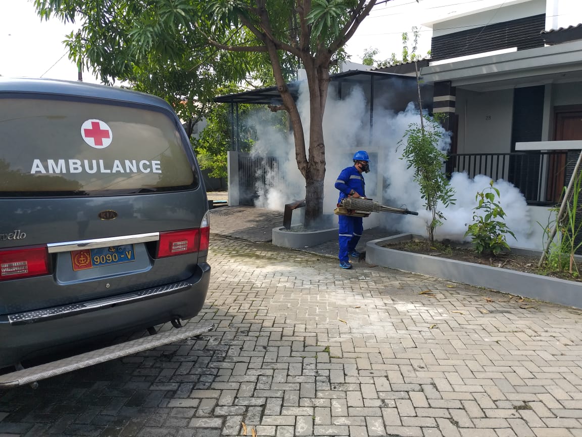 Selain Penyemprotan desinfektan juga sekaligus dilakukan Fogging oleh Diskes Lantamal V, sehubung adanya warga yang mulai terjangkit penyakit Demam Berdarah.