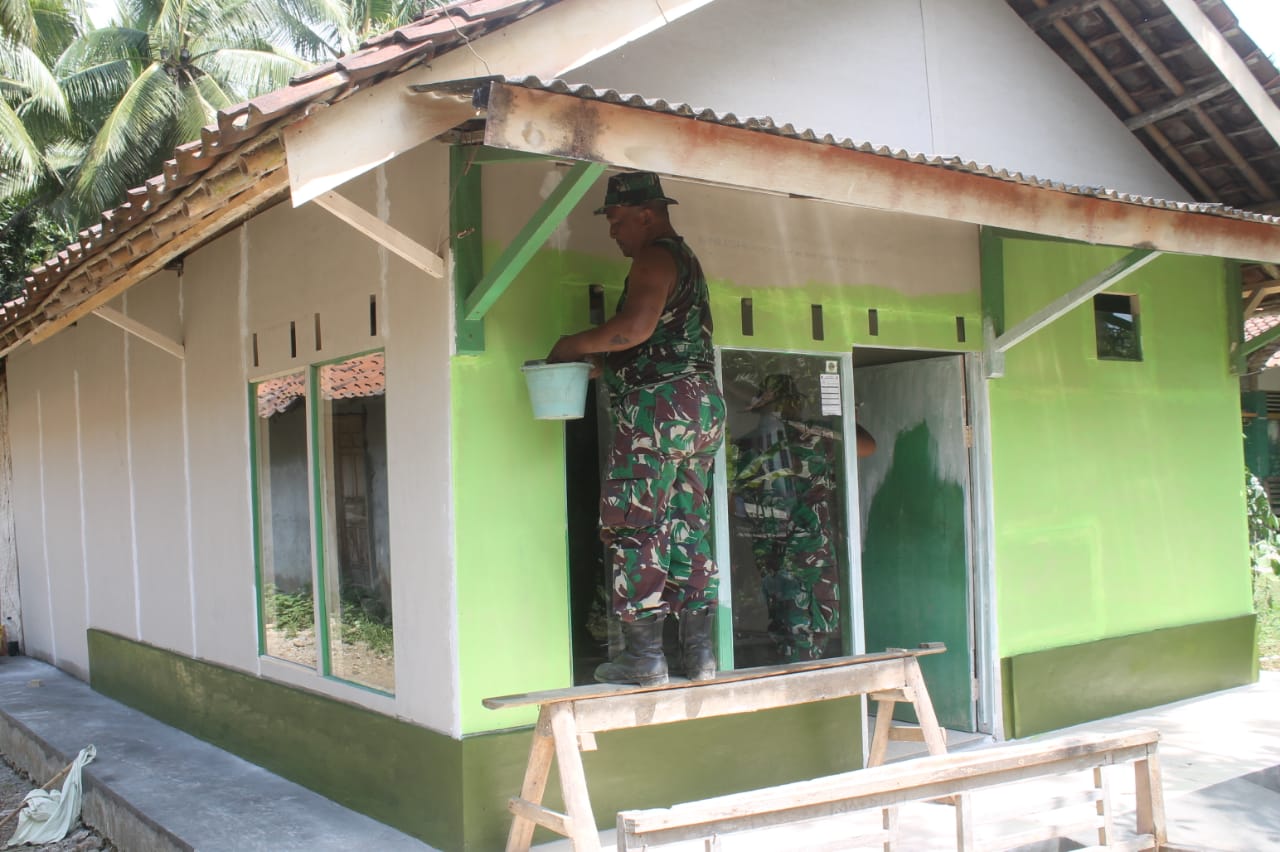 Cilacap, Maspolin.id – Beberapa rumah yang sudah rampung direhab Satgas TMMD Sengkuyung II dan warga Desa Cimrutu, Kecamatan Patimuan, Cilacap, Jateng, Minggu (21/7/2019), mulai dicat.