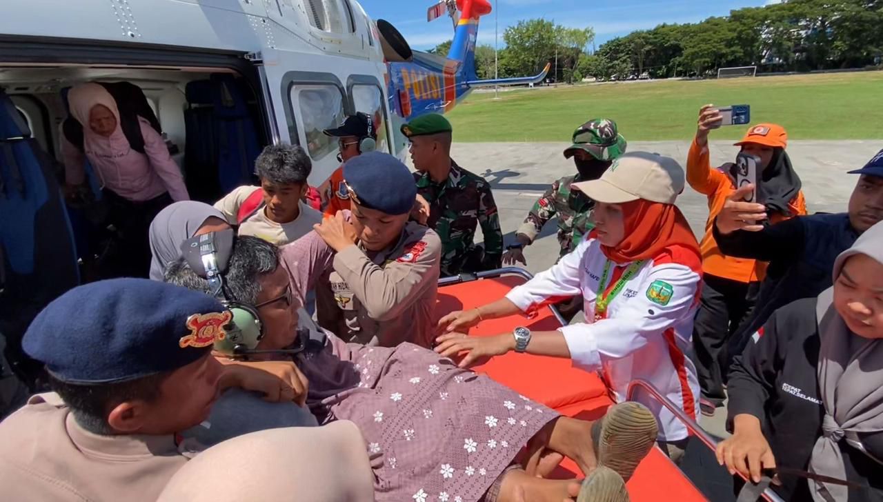 Selanjutnya Ibu tersebut diterbangkan menuju posko induk tanggap bencana provinsi Sulsel di lapangan Andi Djemma Belopa Kabupaten Luwu.