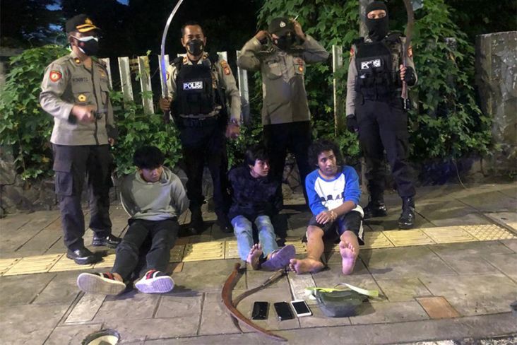 JAKARTA – Maspolin.id|| Tim Patroli Perintis Presisi Tim 1 Sat Samapta Polres Metro Jakarta Pusat menangkap lima orang anggota geng motor di kawasan Tugu Tani, Menteng, Jakarta Pusat pada Sabtu (25/12/2021) dini hari. Kasubag Humas Polres Metro Jakarta Pusat AKP Sam Suharto mengatakan, petugas telah mengamankan lima orang anggota geng motor beserta tiga buah celurit, empat buah motor, dan lima buah handpone.”Semua diserahkan ke Polsek Menteng,” katanya.