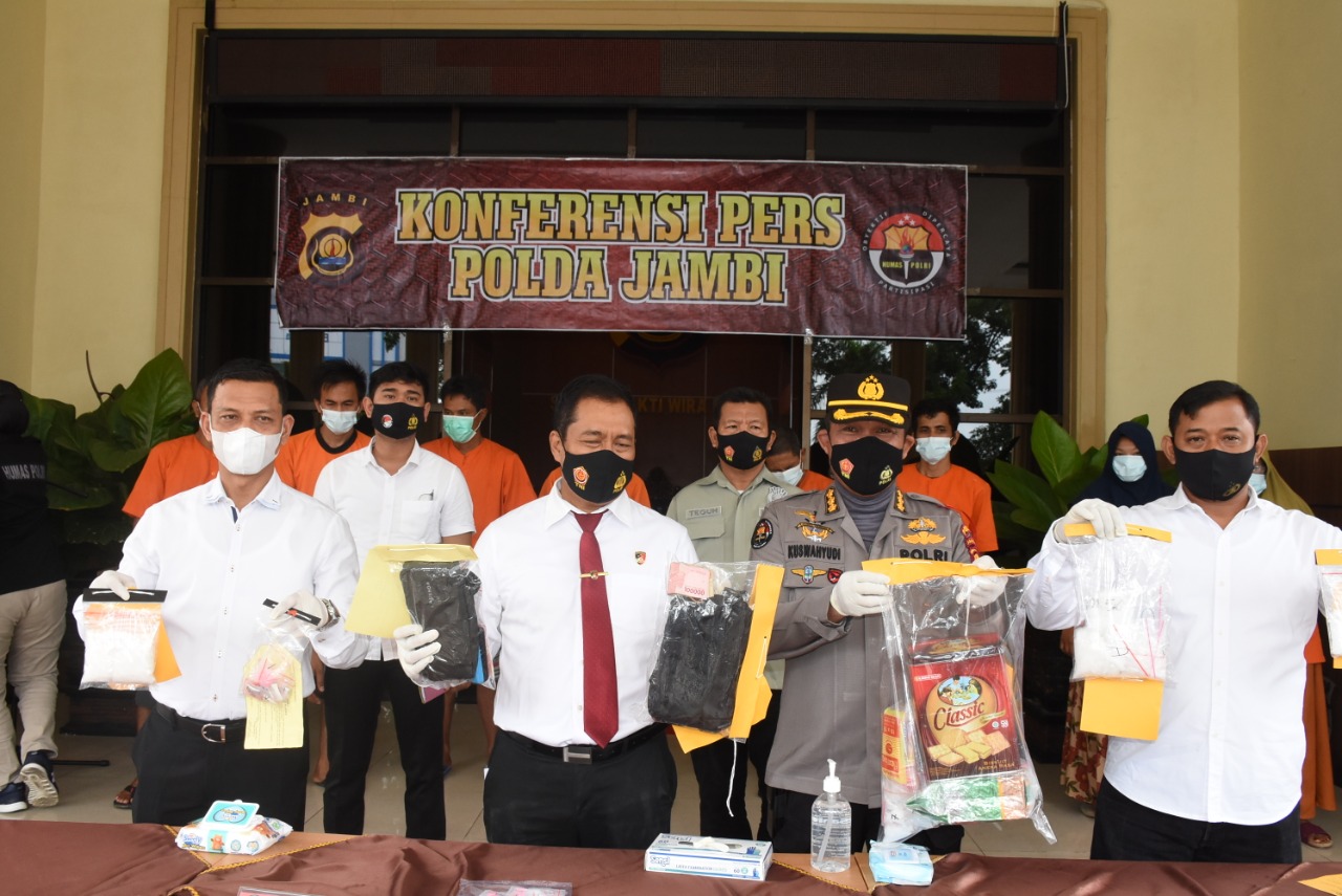 Hal ini disampaikan Diresnarkoba Polda Jambi Kombes Pol Dewa Putu Gede didampingi Kabid Humas, Kombes Pol Kuswahyudi Tresnadi saat konferensi pers ungkap kasus Ditresnarkoba Polda Jambi.