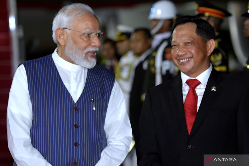 BALI – Maspolin.id|| Perdana Menteri India Narendra Damodardas Modi (kiri) berbincang dengan Menteri Dalam Negeri Tito Karnavian (tengah) setibanya di Bandara I Gusti Ngurah Rai, Bali, Senin (14/11/2022). Perdana Menteri Narendra Damodardas Modi tiba di Bali untuk menghadiri Konferensi Tingkat Tinggi (KTT) G20 yang akan berlangsung pada 15-16 November.