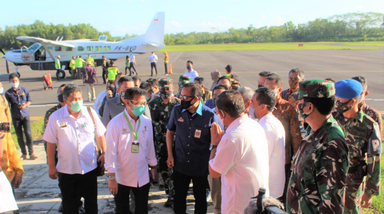 MASPOLIN || CILACAP – Bertempat di Bandar Udara Tunggul Wulung Cilacap, Komandan Pangkalan TNI AL (Danlanal) Cilacap, Letkol Laut (P) Bambang Marwoto, PSC.,M.S., bersama Forkopimda menyambut Kunjungan Kerja Menteri Pertanian. Kemarin.