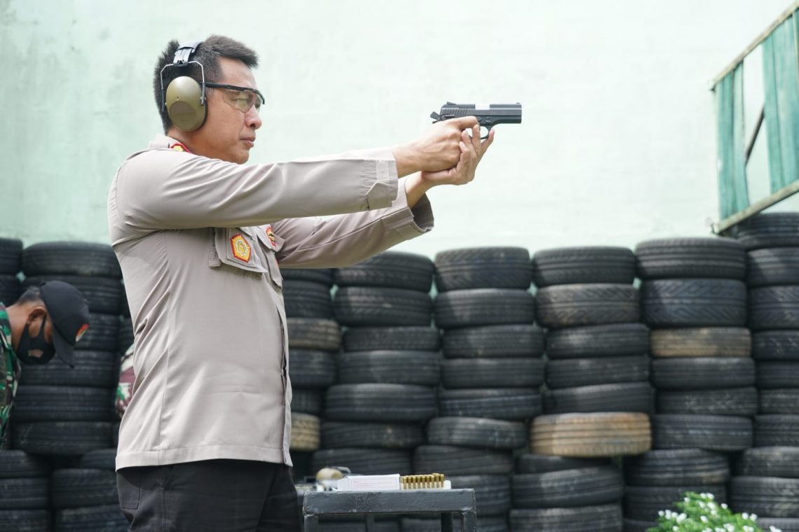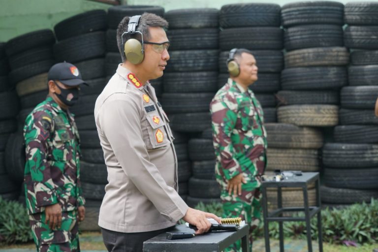 Cikarang – Maspolin.id|| Kapolres Metro Bekasi Kombes Pol Hendra Gunawan S.I.K., M.SI Menghadiri pelatihan menembak bersama Forkompinda Kabupaten Bekasi di lapangan tembak Makodim 0509 Kabupaten Bekasi. selasa (12/11)