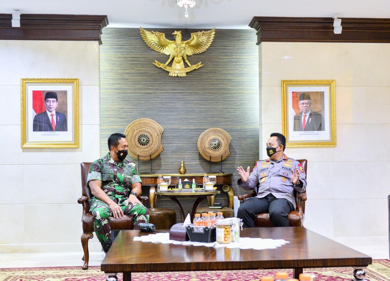 “Baru saja kami bersama pejabat utama Mabes Polri menerima Pak Panglima TNI yang baru tentunya banyak hal yang kita diskusikan bagaimana beberapa hal yang akan kita tingkatkan kedepan seperti sinergitas dan soliditas TNI-Polri,” kata Sigit.