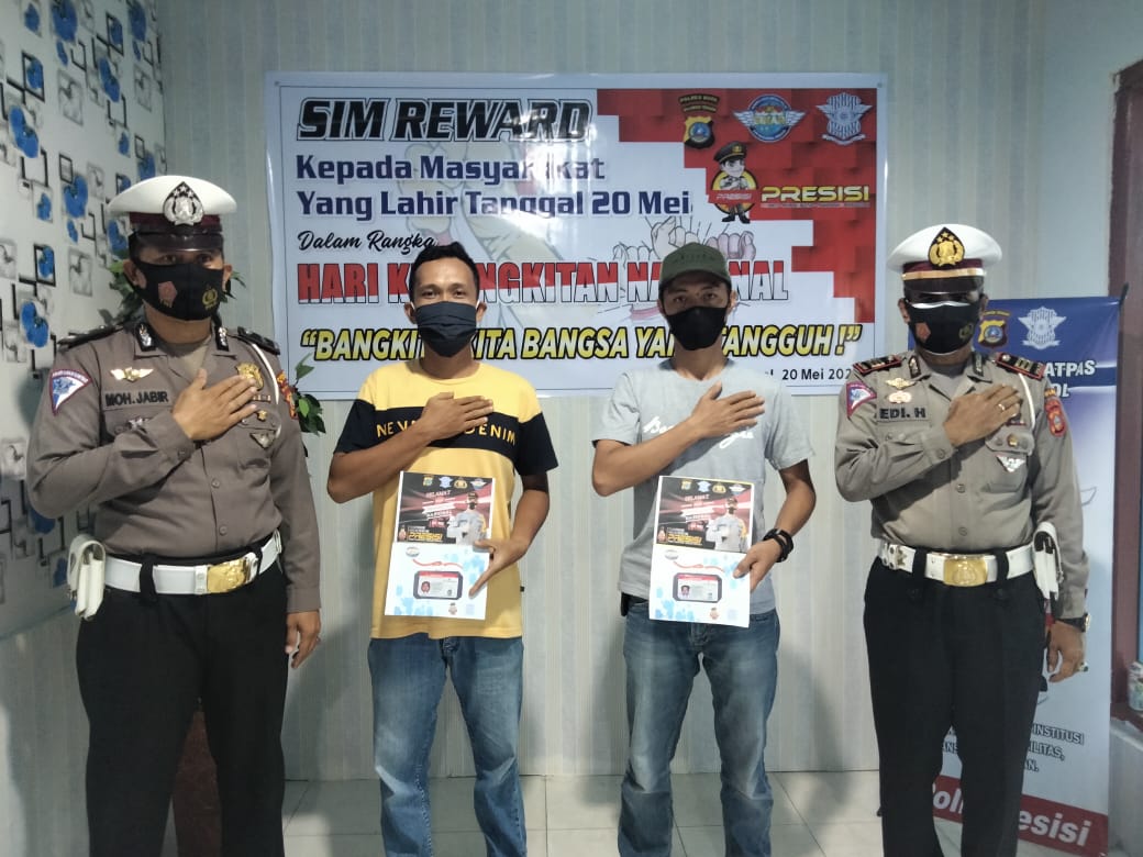 “Kami berikan SIM gratis tersebut sebagai reward kepada masyarakat yang dimana tanggal lahirnya bertepatan dengan tanggal 20 Mei diperingati Hari Kebangkitan Nasional,” kata Kasat Lantas Edi Hafel, Kamis (20/05/2021).