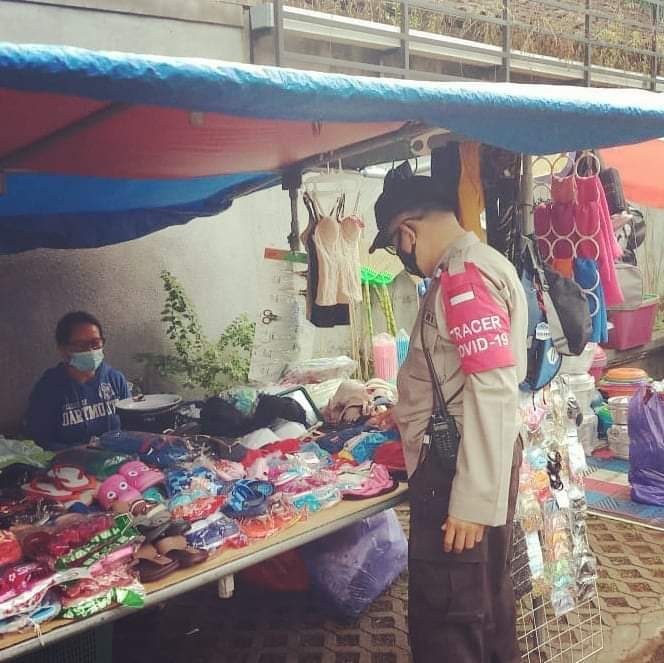 Bhabinkamtibmas dalam kegiatannya menyampaikan beberapa imbauan kepada para pedagang dan pembeli di pasar desa Dawan Kaler agar selalu mematuhi protokol kesehatan, untuk mencegah penularan virus covid-19.
