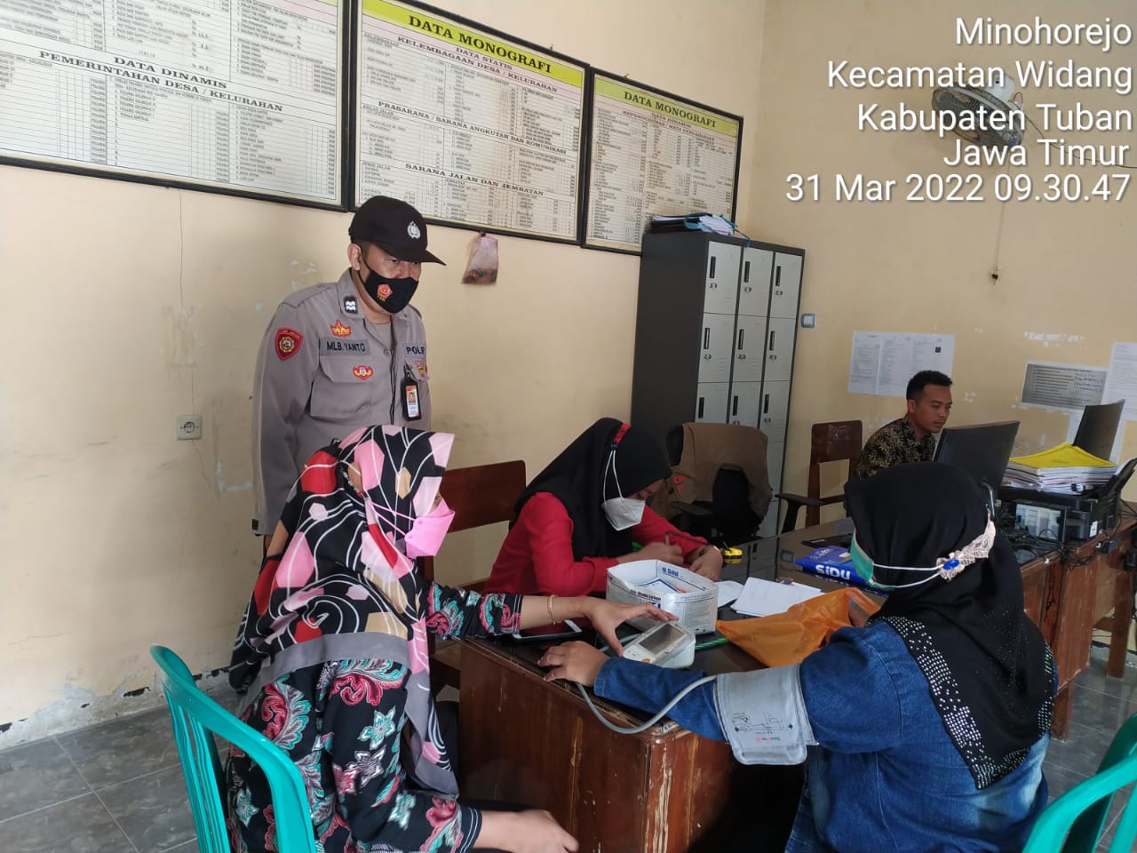 Tuban – Maspolin.id // Pendampingan vaksinasi untuk warga desa binaan dilaksanakan oleh Bhabinkamtimas Polsek Widang, Kamis (31/03/2022).