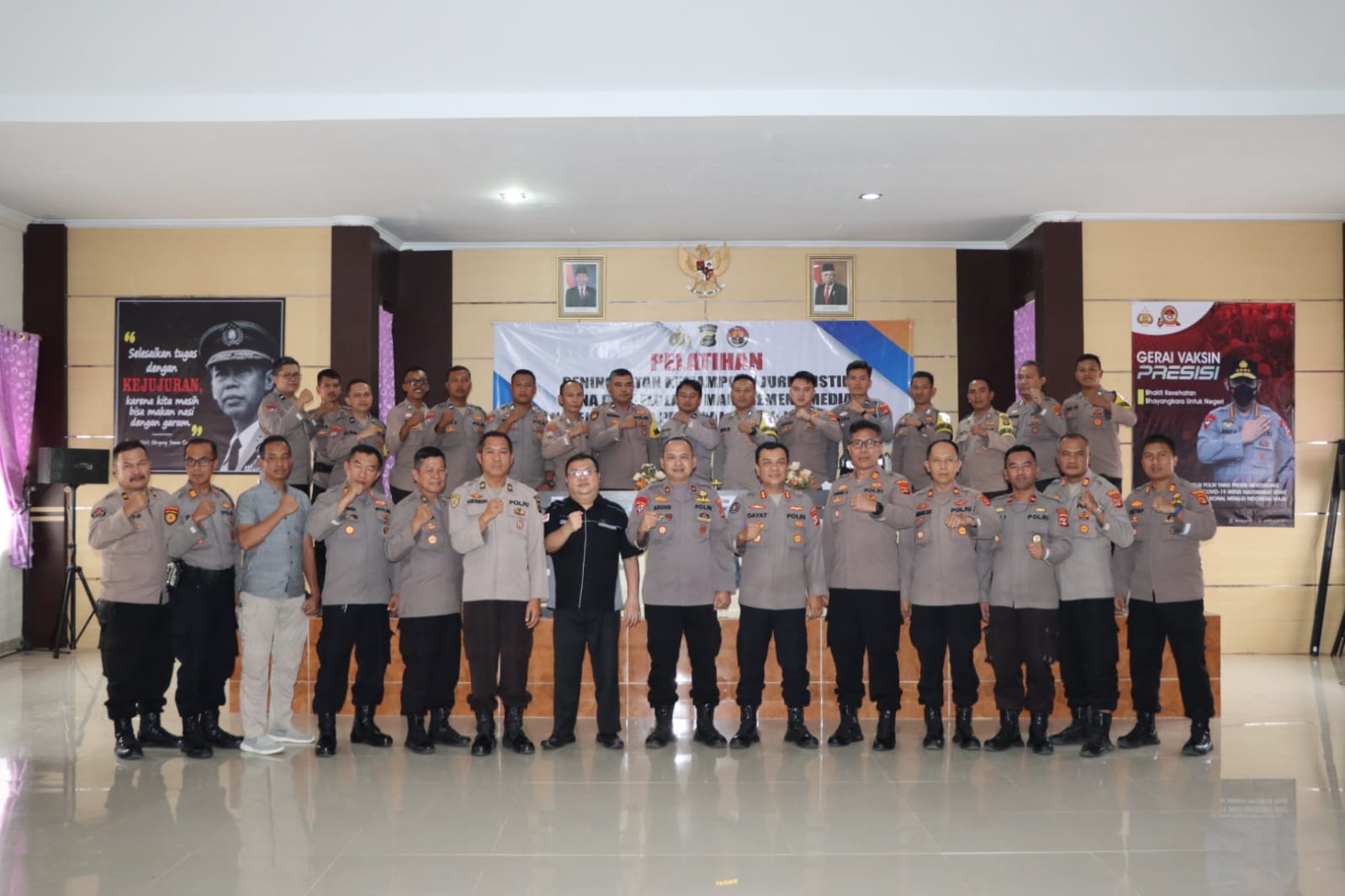 “Teman teman di kepolisian saya berharap ilmu yang sudah diajarkan itu dipraktekkan karena menulis berita itu bukan hanya bisa tapi juga biasa. Terbiasa apa-apa yang terjadi di lingkungan ini bisa cepat diketahui oleh masyarakat. Itu targetnya,” tandasnya.