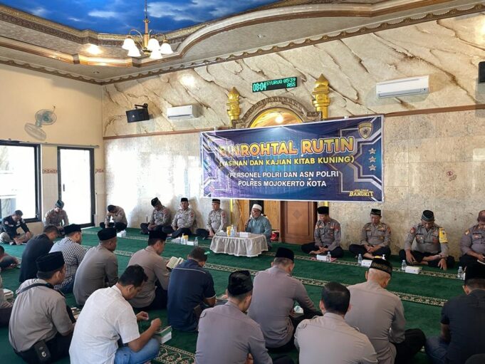 Kota Mojokerto – Maspolin.id|| Dalam Rangka perkuat Iman dan Takwa Personel kepada Allah SWT, Polresta Mojokerto rutin gelar Binrohtal (Pembinaan Rohani dan Mental) yang bertempat di Masjid Darul Muttaqin Mapolresta Mojokerto dan dilaksanakan setelah selesai laksanakan apel pagi,Kamis (08/06/23).