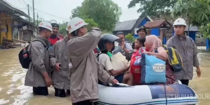 Karawang, JAWA BARAT – Maspolin.id|| Intensitas hujan deras yang tinggi memicu banjir di Desa Karanglinggar, Kecamatan Telukjambe Barat, Kabupaten Karawang. Merespons cepat kondisi darurat tersebut, Tim SAR Kompi 3 Batalyon C Pelopor Sat Brimob Polda Jabar segera bergerak melaksanakan penanganan dan bantuan di lokasi terdampak, Minggu (7/12/2025).