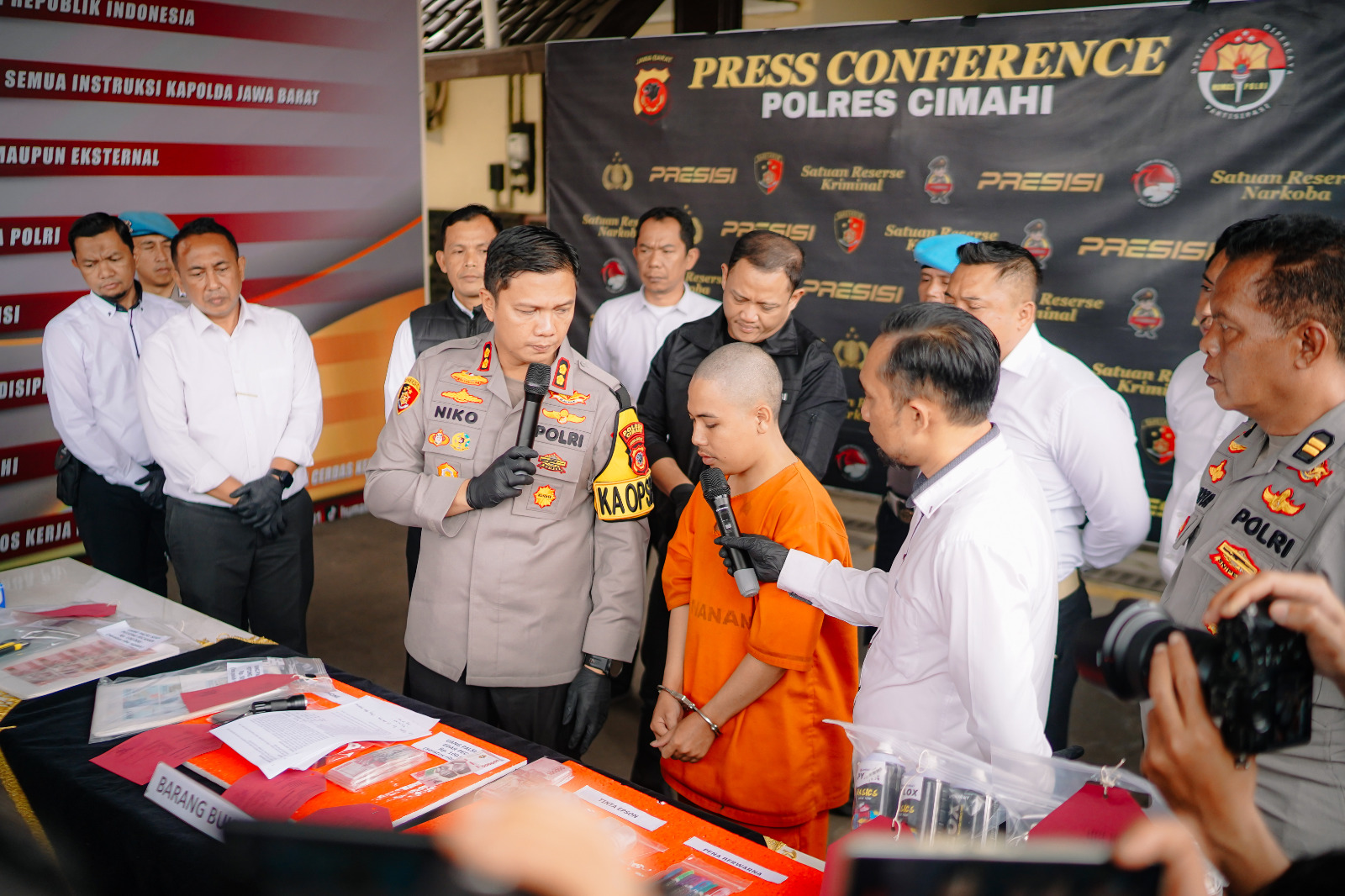 Kapolres Cimahi, AKBP Niko Nurallah Adi Putra, menjelaskan barang bukti yang disita meliputi 77 lembar uang palsu pecahan Rp100.000 dan 150 lembar uang palsu pecahan Rp50.000 yang belum dipotong, serta 184 lembar uang palsu pecahan Rp100.000 yang siap edar. Selain uang palsu, polisi juga mengamankan alat pencetak, stempel Bank Indonesia, stempel UV, printer, dan sprei khusus untuk memberi tekstur mirip uang asli.