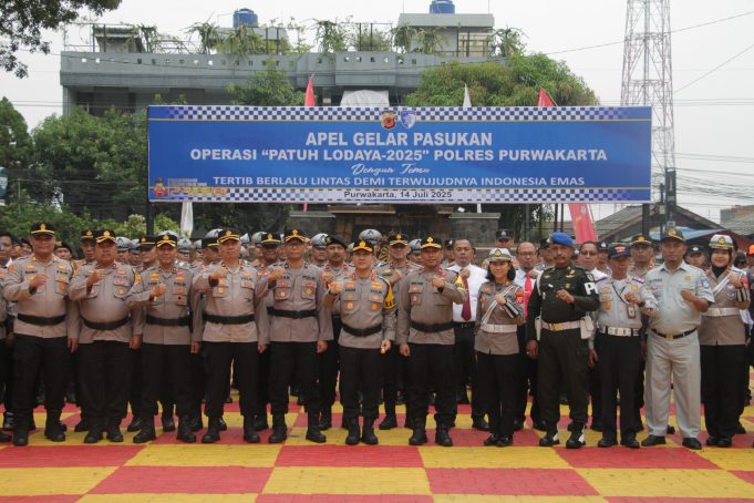 Purwakarta, JAWA BARAT – Maspolin.id|| Operasi Patuh Lodaya 2025 resmi dimulai di wilayah hukum Polres Purwakarta, Polda Jawa Barat, pada Senin, 14 Juli 2025. Operasi yang berlangsung selama dua pekan hingga 27 Juli 2025 ini ditandai dengan apel gelar pasukan di Mapolres Purwakarta yang dipimpin langsung oleh Kapolres Purwakarta, AKBP I Dewa Putu Gede Anom Danujaya. Apel tersebut juga dihadiri oleh jajaran Polres Purwakarta, unsur TNI, Satpol PP, dan Dishub Kabupaten Purwakarta.