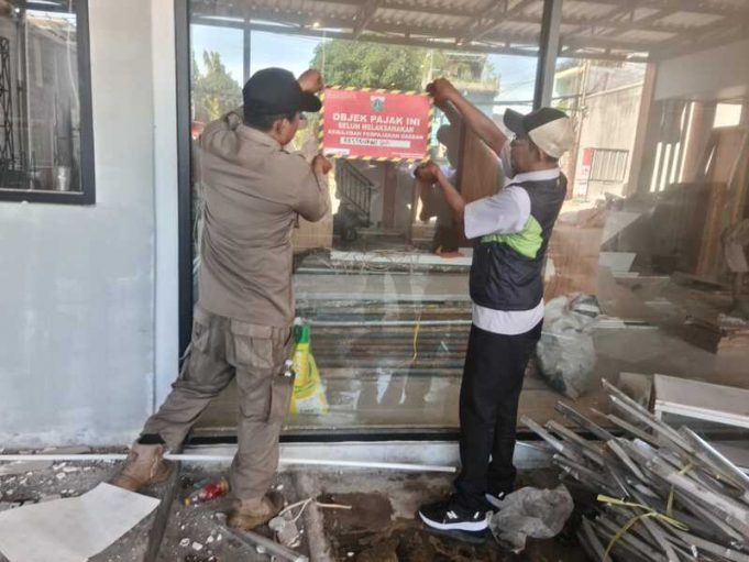 JAKARTA – Maspolin.id|| Petugas gabungan dari Unit Pelayanan Pemungutan Pajak Daerah (UP3D), dibantu Satpol PP, Polri dan TNI, Rabu (23/4), memasang stiker penunjak terhadap puluhan minimarket dan restoran yang tersebar di Kecamatan Kemayoran, Jakarta Pusat.