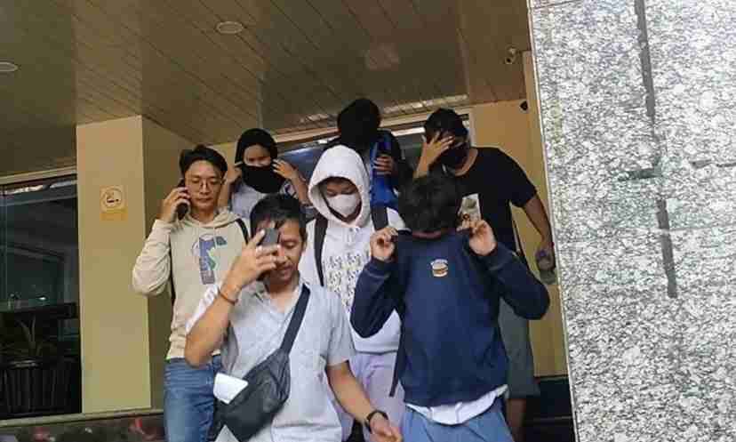 Anak-anak itu tampak masih mengenakan seragam putih abu-abu. Mereka berusaha menutup wajah mereka lantaran di depan lobi, kamera pers sudah berjejer menyambut kepulangan mereka.