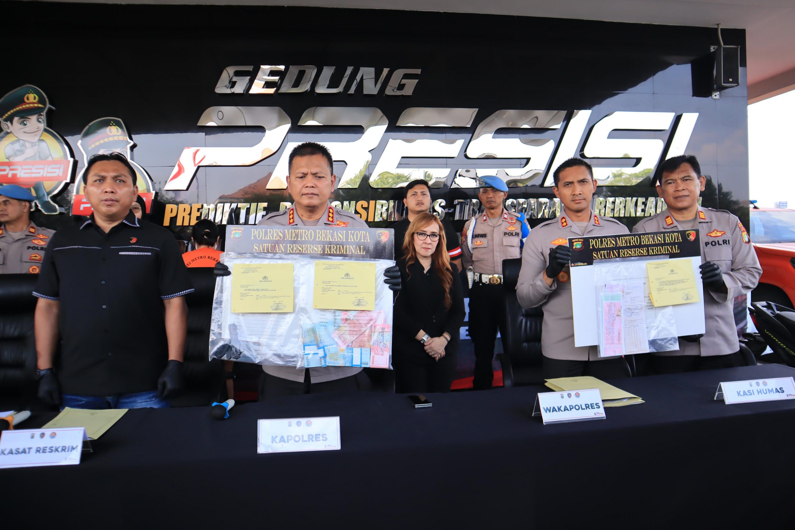 PMJ – Maspolin.id|| Jajaran Polres Metro Bekasi Kota berhasil membongkar praktik penipuan dan penggelapan bermodus jual beli properti fiktif yang telah merugikan puluhan warga. Dalam konferensi pers yang digelar di halaman Mapolres, Kapolres Metro Bekasi Kota Kombes Pol Kusumo Wahyu Bintoro, S.H., S.I.K., M.H., menjelaskan bahwa pengungkapan kasus ini merupakan hasil penyelidikan yang berlangsung selama beberapa bulan terakhir.