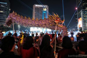 JAKARTA – Maspolin.id|| Warga antusias melihat instalasi cahaya bertajuk Festival Imlek Jakarta 2026 di kawasan Bundaran HI, Jakarta Pusat, Jumat (13/2). Festival Imlek Jakarta 2026 ini menjadi simbol komitmen Jakarta sebagai kota global yang inklusif dan terbuka bagi seluruh latar belakang agama serta budaya.