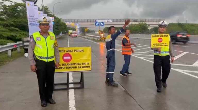 Di Rest Area 519 B, petugas menutup akses masuk saat kapasitas parkir mencapai 80% atau sekitar 280 kendaraan dari total daya tampung 350 kendaraan.
