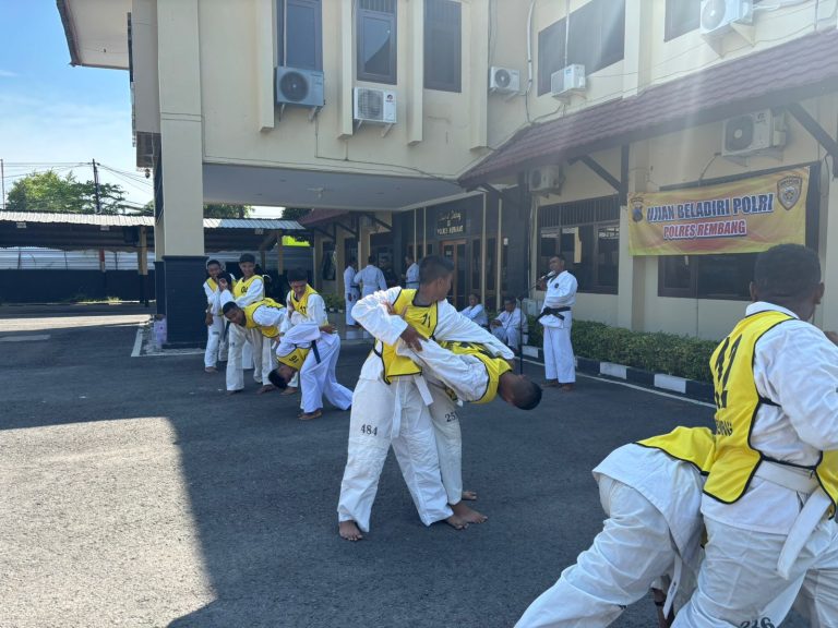 Rembang, JAWA TENGAH – Maspolin.id|| Kepolisian Resor Rembang Polda Jateng menggelar ujian beladiri Polri Periodik Semester 1 Tahun 2025 bertempat di Halman Apel Mapolres Rembang, Rabu (07/05/2025).