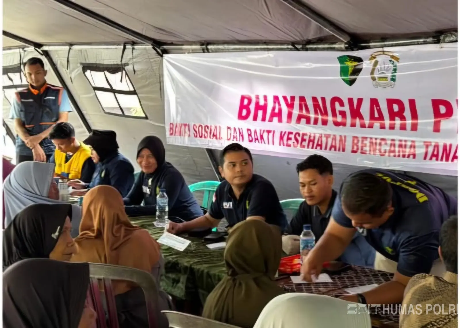Banjarnegara, JAWA TENGAH – Maspolin.id|| Suasana pengungsian di Kecamatan Pandanarum, Kabupaten Banjarnegara, tak hanya dipenuhi rasa was-was karena ancaman longsor susulan, tetapi juga kelelahan fisik dan mental warga yang sudah berhari-hari harus meninggalkan rumah mereka. Di tengah situasi itu, tim kesehatan dari Bidang Kedokteran dan Kesehatan (Dokkes) Polda Jawa Tengah kembali hadir memberikan pelayanan kesehatan gratis bagi para pengungsi pada Minggu (23/11/2025).