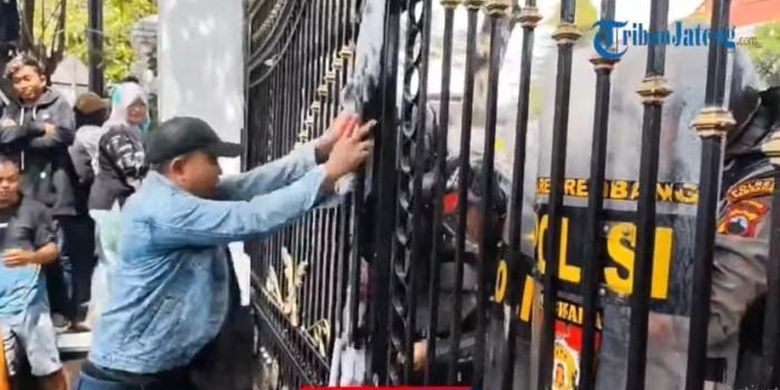 Beberapa peserta demo juga mencoba menerebos gerbang kantor Bupati Pati yang dijaga oleh anggota brimob dari dalam.