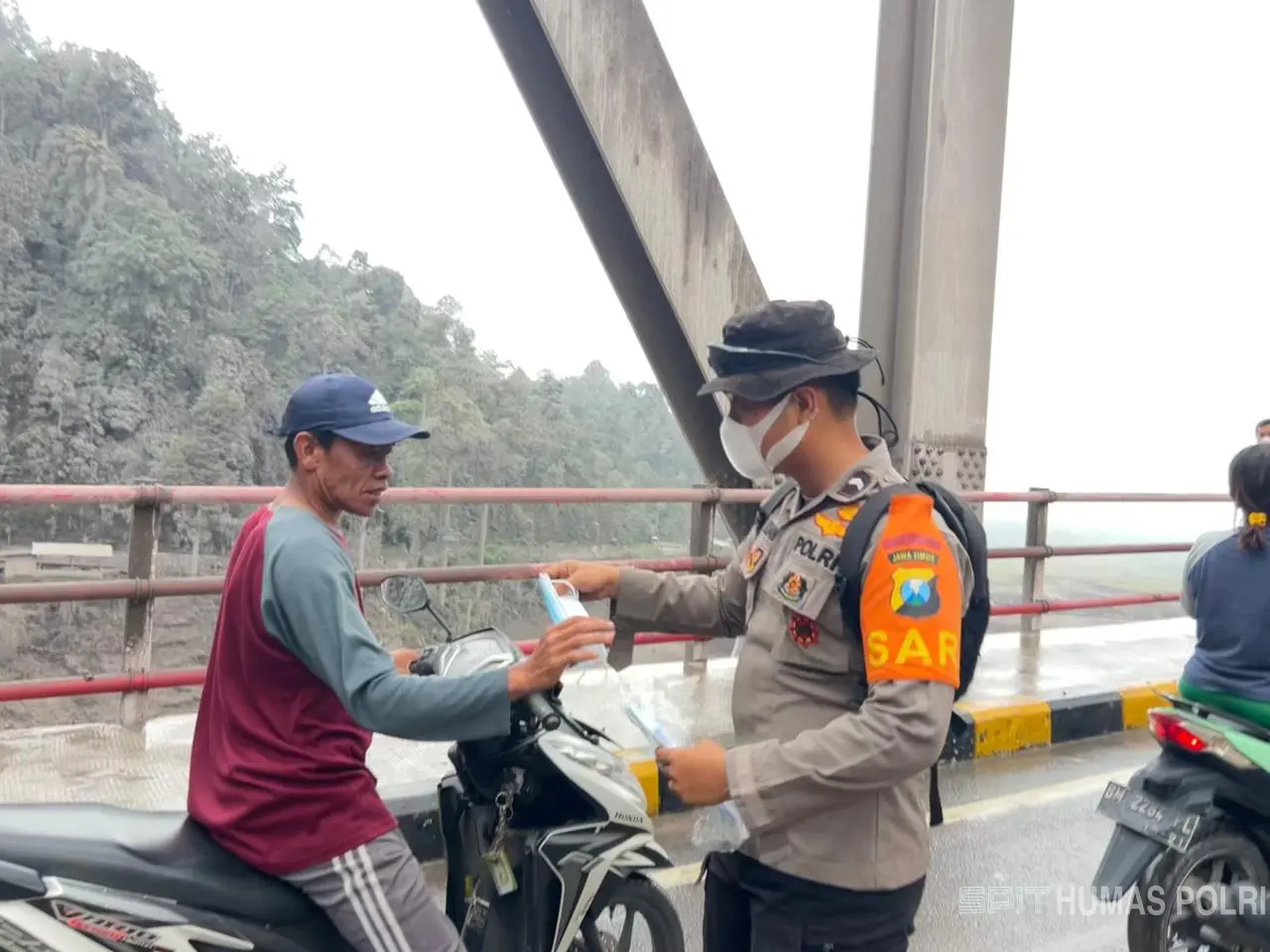 SURABAYA, JAWA TIMUR – Maspolin.id|| Aktivitas erupsi Gunung Semeru kembali memicu sebaran abu vulkanik di sejumlah titik jalur penghubung desa terdampak Tim SAR Polda Jawa Timur turun langsung ke lapangan dengan membagikan masker kepada para pengendara yang melintas, Minggu (23/11/2026).