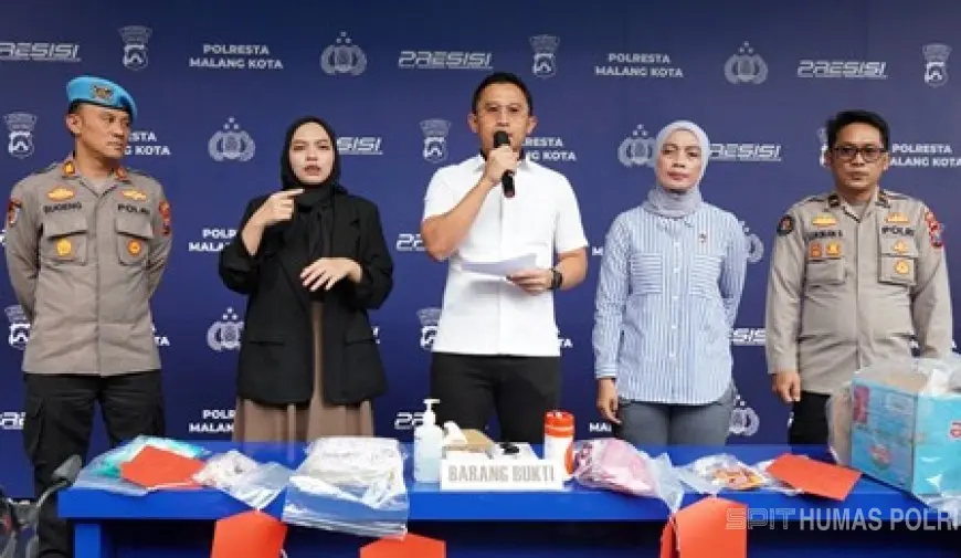 Dalam konferensi pers, Kasatreskrim Polresta Malang Kota AKP Rahmad Aji Prabowo bersama Kanit PPA Iptu Khusnul dan Kasi Humas Ipda Lukman Sobikhin memaparkan hasil pengungkapan kasus pembuangan bayi yang ditemukan di pinggir Jalan Jaksa Agung Suprapto, Kelurahan Klojen, Kota Malang.