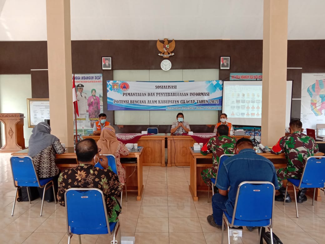 Maspolin.id, Cilacap – Wujudkan masyarakat tanggap terhadap bencana alam yang terjadi di wilayahnya, Badan Penanggulangan Bencana Daerah (BPBD) Kabupaten Cilacap melakukan sosialisasi dan penyebarluasan informasi potensi bencana alam di tahun 2021. Kegiatan digelar di Pendopo Kecamatan Kesugihan, Kamis (18/2/2021).