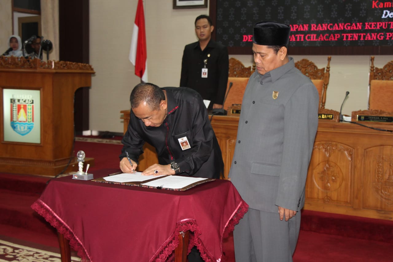 Di akhir kegiatan, dilakukan penandatanganan keputusan bersama antara Ketua DPRD Kabupaten Cilacap dengan Bupati Cilacap, penetapan Peraturan Daerah Kabupaten Cilacap mengenai Badan Permusyawaratan Desa disaksikan oleh seluruh yang hadir. (Estanto)
