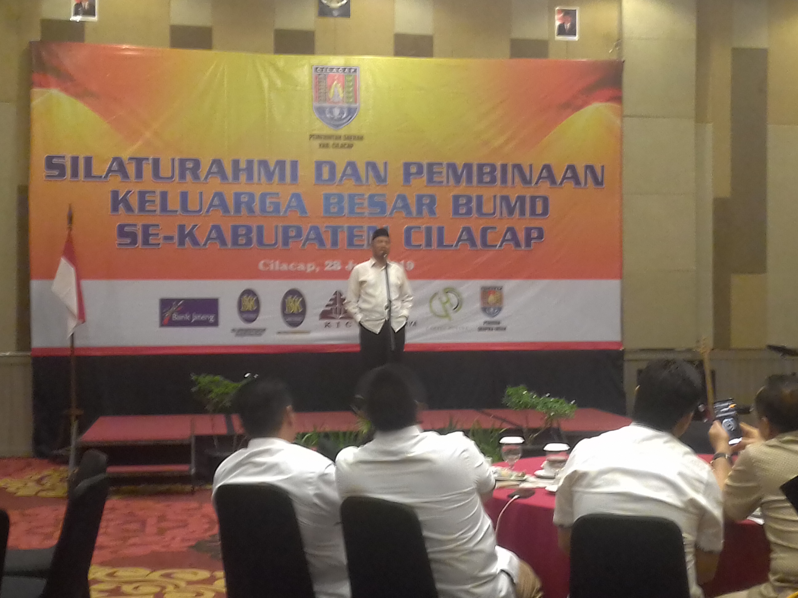 Cilacap, Maspolin.id – Ratusan karyawan Badan Usaha Milik Daerah (BUMD) se-Kabupaten Cilacap hadir dalam kegiatan Silaturahmi dan Pembinaan Keluarga Besar BUMD di Sekar Ageng Ballroom Favehotel Cilacap, Jumat (28/6/2019) pagi.