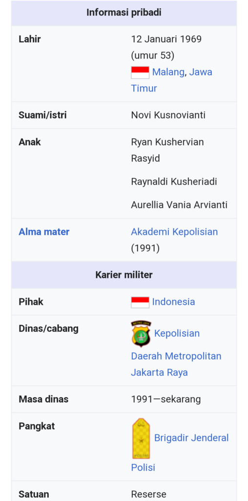 Berdasar catatan, polisi kelahiran 19 Januari 1969 itu sempat menjadi Karoprovos Divpropam Polri sebelum menjadi orang nomor dua di Polda Metro Jaya.