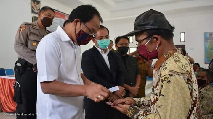 Bupati Humbang Hasundutan Dosmar Banjarnahor, SE menyerahkan BLT secara lansung di Desa Sibuntuon Parpea dan Desa Tapian Nauli dengan jumlah Rp. 600.000,- per KK yang bersumber dari refocusing dan realokasi APBD Humbahas Tahun Anggaran 2020 dari bulan April, Mei dan Juni tahun 2020.