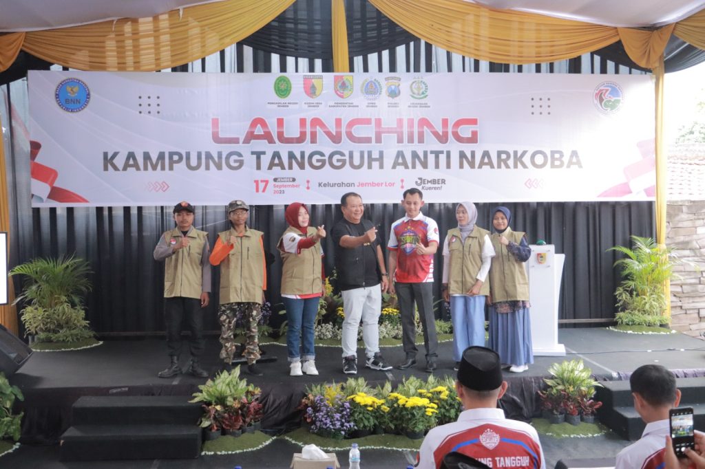 Jember – Maspolin.id|| Bupati Jember, H. Hendy Siswanto, secara resmi meresmikan Kampung Tangguh Anti Narkoba di Jalan Belimbing, didampingi oleh Forkopimda plus Kabupaten Jember yang ditandai dengan pemotongan pita dan pemencetan tombol bersama. Acara ini dihadiri oleh 100 orang yang terdiri dari tokoh masyarakat, toko agama dan kelompok organisasi anti narkoba. Minggu (17/09/2023)