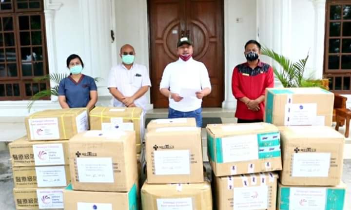 Bantuan Hibah dari Kemenko Kemaritiman tersebut dengan total Rp. 332.867.850.00 yang terdiri dari Facemaks Green 10.000 pcs, Face Shield 625 pcs, Coveral With Hood 500 pcs, Level 2 High Risk Isolation Gown 500 pcs, PW Isolation Gown 1.000 dan Bouffant Cap 2.000 pcs.