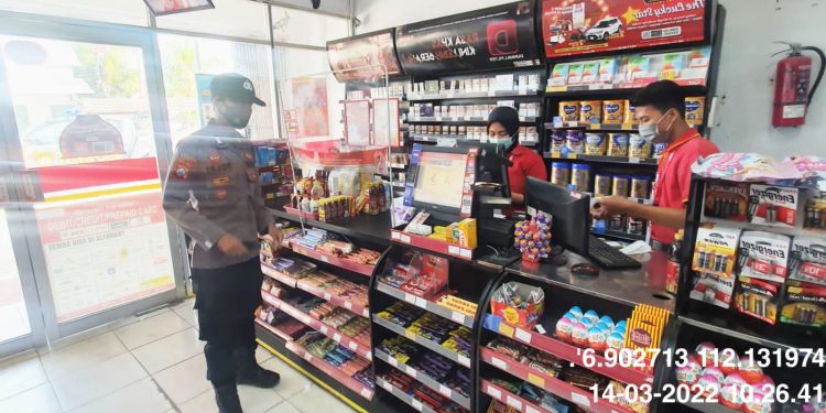 Seperti pada hari Senin (14/03/2022). anggota Samapta Polsek Palang yaitu AIPDA ARIF ROFIUDIN bersama dengan BRIPTU BAYU ADI melaksanakan patroli di pertokoan Alfamart dan Indomart dengan menggunakan mobil 801 Polsek Palang Polres Tuban, dan melaksanakan penjagaan serta dialogis dengan masyarakat dan penjaga Indomart dan Alfamart yang berada diwilayah Kecamatan Palang Kabupaten Tuban.