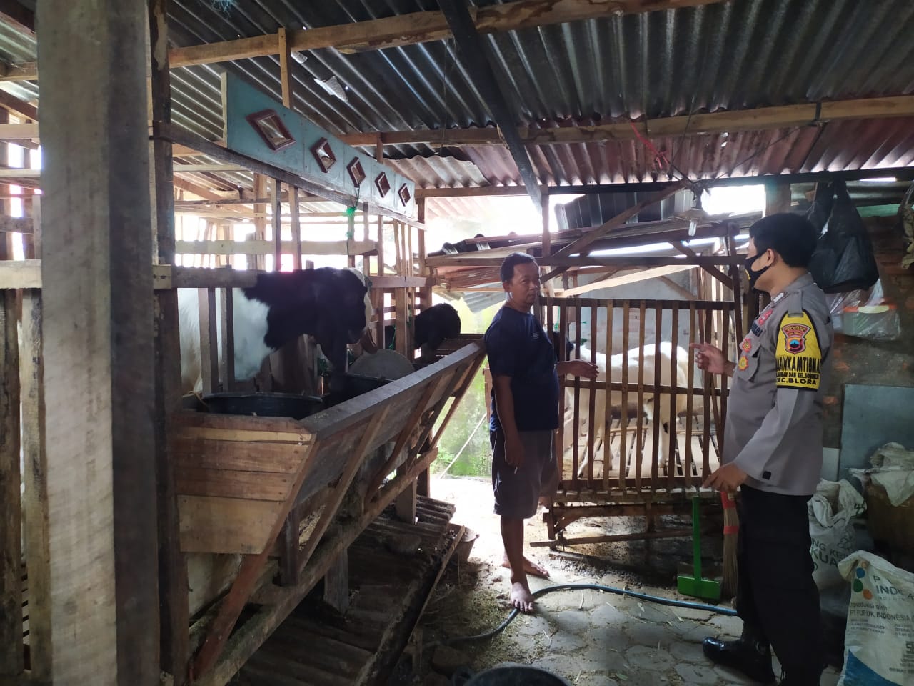 Blora ~ Maspolin.id// Jajaran Bhabinkamtibmas Polres Blora Polda Jawa Tengah, menyambangi sejumlah peternakan sapi dan kambing yang ada di desa binaannya, mereka mengimbau para peternak untuk menjaga kebersihan kandang agar hewan ternaknya tidak mudah terkena wabah penyakit, Jumat, (13/05/2022).