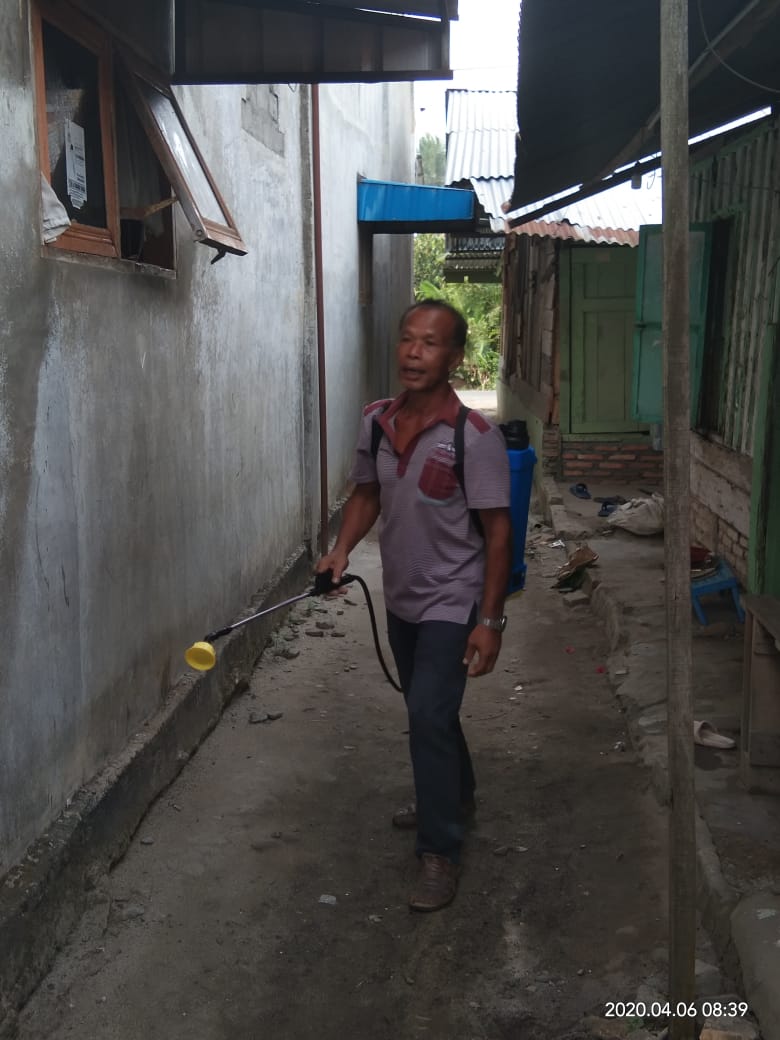 Lebih lanjut Abdul Karim menyampaikan ” Untuk biaya pembelian bahan disinfektan ini tidak ada bantuan dari Pemerintah Kabupaten dan biaya pembelian disinfektan ini dari kantong pribadi saya sendiri.