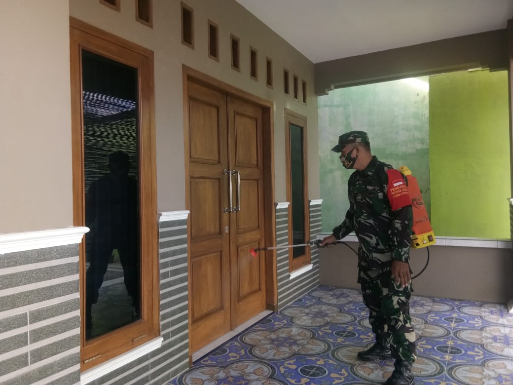 Maspolin.id, Cilacap – Satu orang dinyatakan terpapar Covid-19, Babinsa Kelurahan Lomanis Koramil 01/Cilacap Sertu Catur Pambudi dan Bhabinkamtibmas melaksanakan penyemprotan desinfektan di rumah Kos kosan milik Adnan di Jln. Tamrin RT 01 RW 02 Kelurahan Lomanis, Kecamatan Cilacap Tengah, Kabupaten Cilacap, Jum’at (18/9/2020).