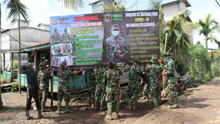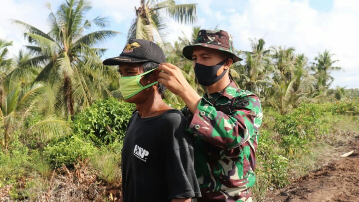 Berkaitan dengan hal tersebut, Satuan Tugas TNI Manunggal Membangun Desa (TMMD) ke 108 Kodim 0419/Tanjab gencar melakukan himbauan pentingnya menggunakan masker. Selain himbauan, juga mensosialisasikan melalui Babinsa setempat ataupun dengan memasang Banner serta turun langsung ke lapangan untuk membagikan masker.