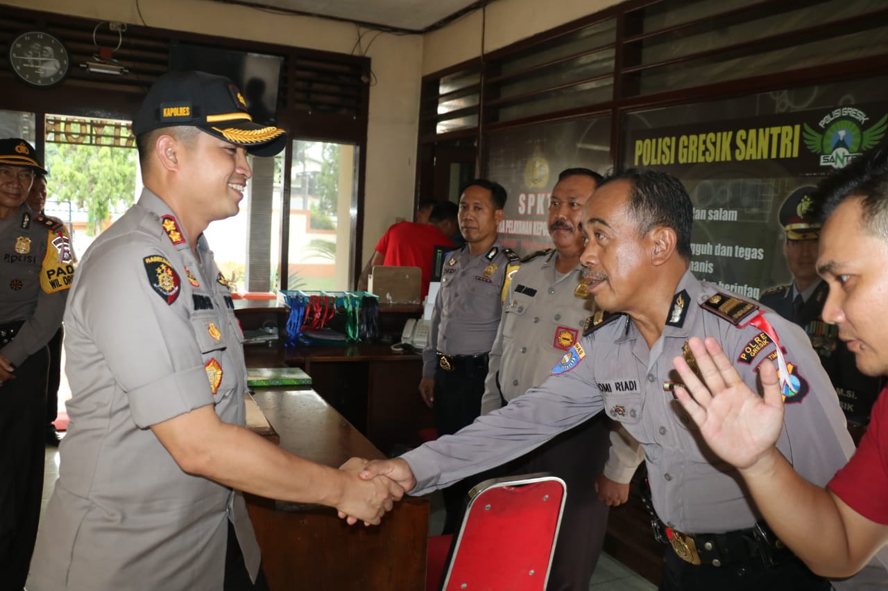Gresik(Maspolin.id) – Untuk mengetahui kesiapsiagaan anggotanya Kapolres Gresik AKBP Wahyu S Bintoro, SH SIK MSi.melakukan sidak ke Mapolsek Driyorejo.