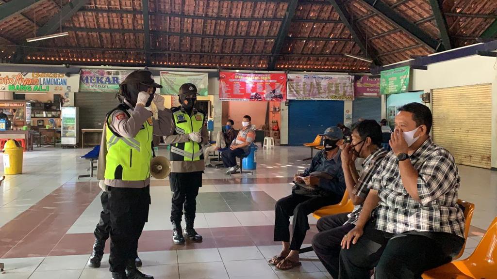 MASPOLIN || Bojonegoro – Guna memutus rantai penyebaran virus Covid-19, Polwan Polres Bojonegoro melaksanakan himbauan tentang protokol kesehatan yakni menggunakan masker, mencuci tangan dengan air mengalir dan menjaga jarak atau jangan berkerumun kepada masyarakat di sekitaran pasar Kota Bojonegoro dan warung-warung yang biasa tempat nongkrong, Rabu (11/11/2020).