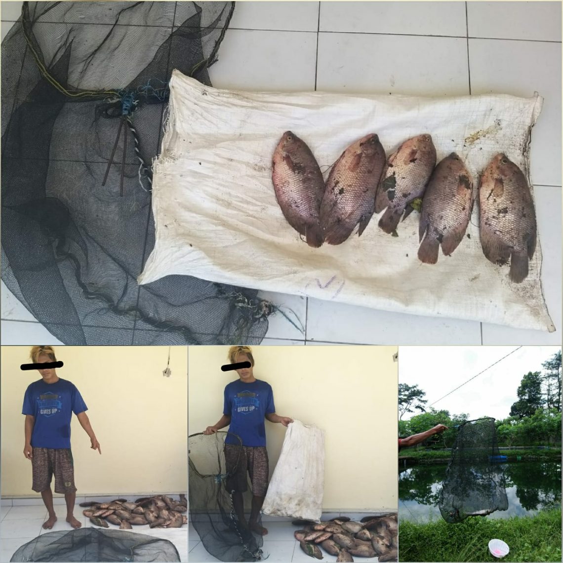 Pelaku yang kepergok sedang mengambil ikan milik korban langsung kabur.