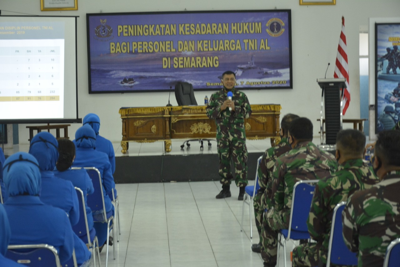 Penyuluhan tersebut dengan mengambil tema “Peningkatan Kesadaran Hukum Bagi Personel dan Keluarga TNI AL Di Semarang” serta membahas tentang norma norma kehidupan dalam berumah tangga dan masalah sosial yaitu antara lain Desersi, Narkoba, LGBT dan Undang Undang ITE.