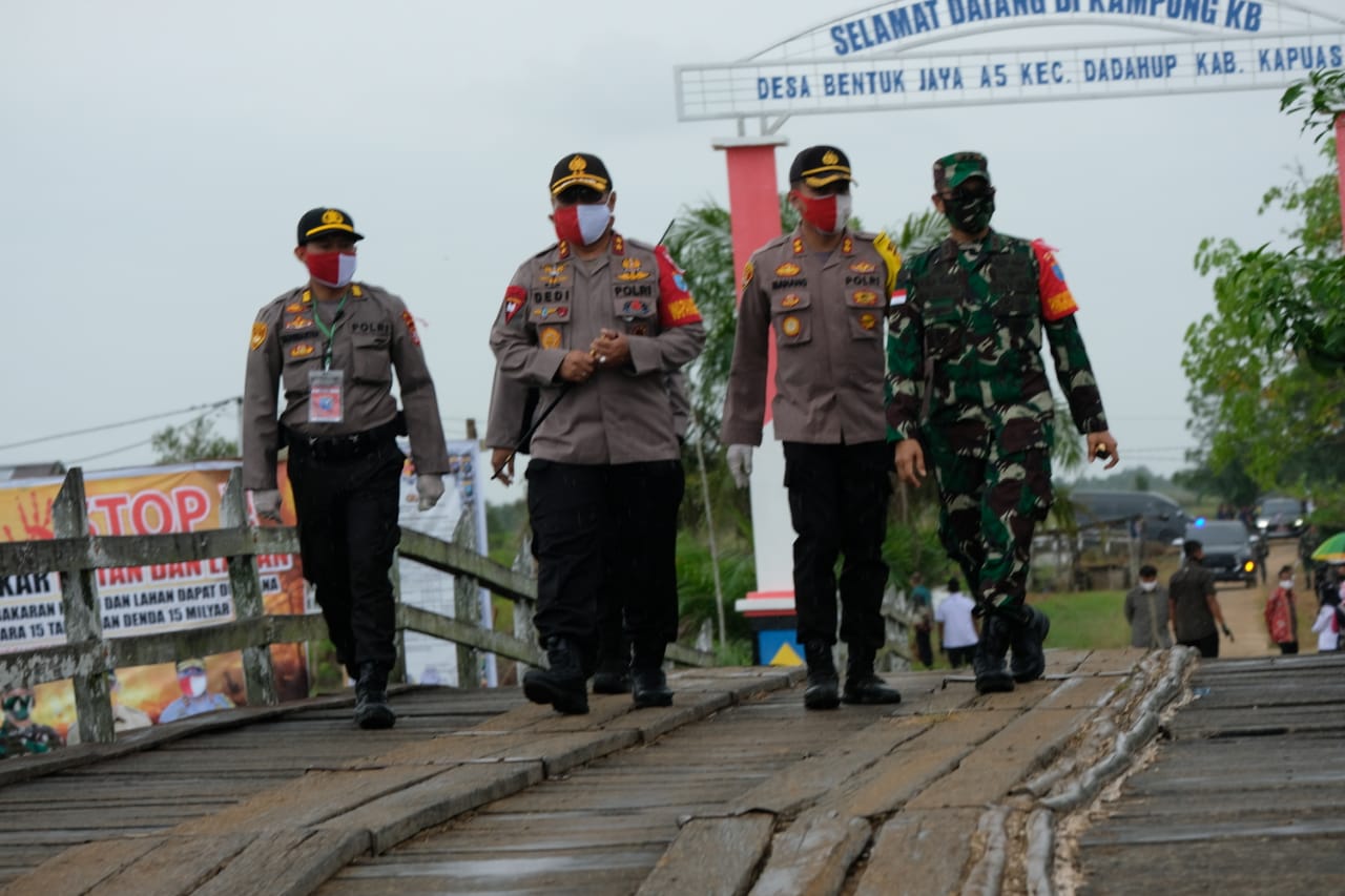 MASPOLIN || Kapuas (Kalteng) — Setelah tiba mempergunakan helikopter dari Kota Palangka Raya menuju Kabupaten Kapuas, Kapolda Kalteng Irjen Pol. Dr. Dedi Prasetyo, terlihat menjadi saksi dalam peresmian food estate dan meninjau saluran irigasi Sambo Desa Bentuk Jaya, Kecamatan Dadahup, Kabupaten Kapuas, Kamis (09/07/2020).