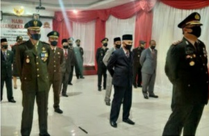 Sungai Penuh, Maspolin.id—Dandim 0417/Kerinci Letkol Czi Fitriadi ST, Hadiri by Peringatan Hari Ulang Tahun (HUT) ke-74 Bhayangkara tahun 2020 yang diselenggarakan berbeda seiring adanya pandemi Covid-19 bertempat di Aula Tri Brata Polres Kerinci, Rabu (1/7/2020).